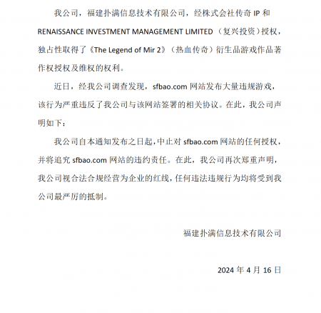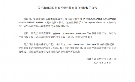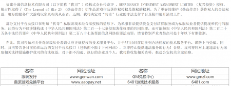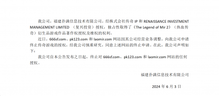 202405-18bwin·必赢信息技术有限公司(以下简称“我司”)经株式会社传奇IP 、RENAISSANCE INVESTMENT MANAGEMENT LIMITED (复兴投资...